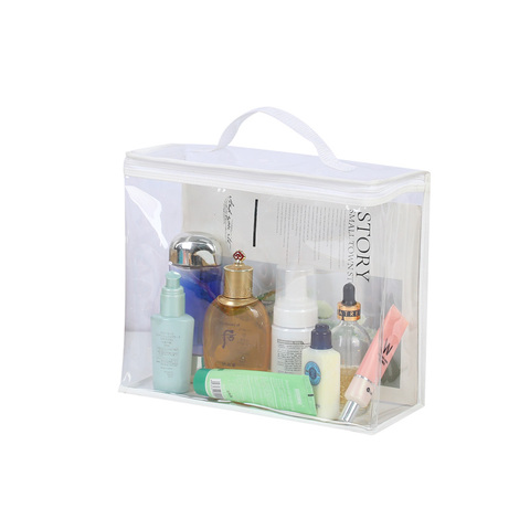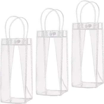 Custom Clear Plastic PVC Tote Pouch with Leather Handle for Cosmetic Beach Clothing Shoes Socks Fur Packaging Gift Giving