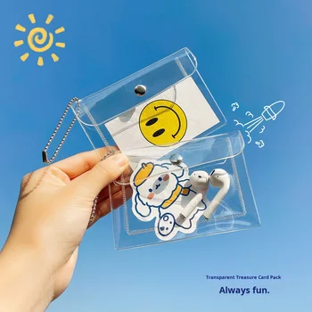 Popular Version Ins Girl Transparent PVC Glitter Card Case Foldable Neck Wallet Coin Purse for Women Ins Girls Style ID Bag