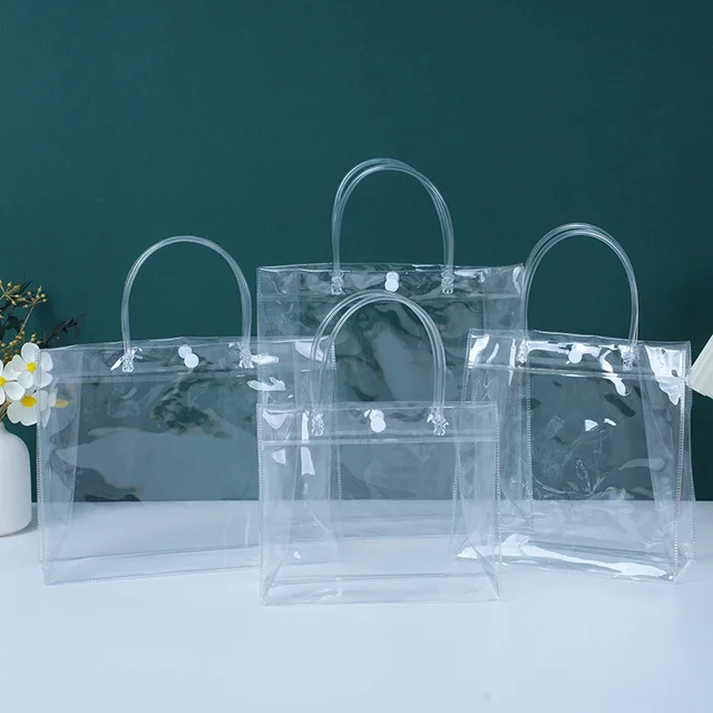 Custom Clear Plastic PVC Tote Pouch with Leather Handle for Cosmetic Beach Clothing Shoes Socks Fur Packaging Gift Giving